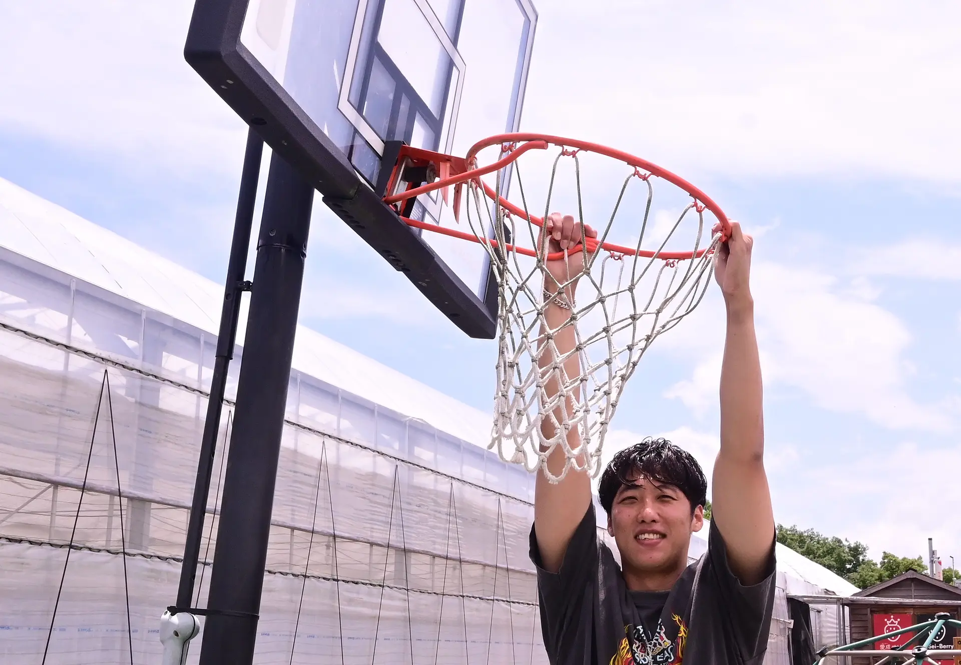 愛成ベリーさんはBリーグ名古屋ダイヤモンドドルフィンズのオフィシャルパートナーです。ドルフィンズの選手やファンが度々訪れます。取材時は東京2020オリンピックに出場した張本天傑選手がファンサービスを実施。一緒にシュートしたり、スイーツを食べさせてくれたり、ファンには夢のような時間でした。