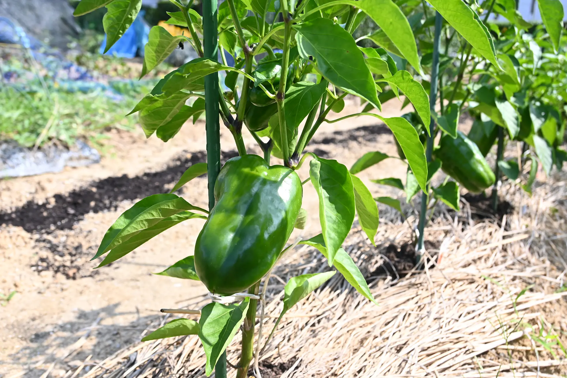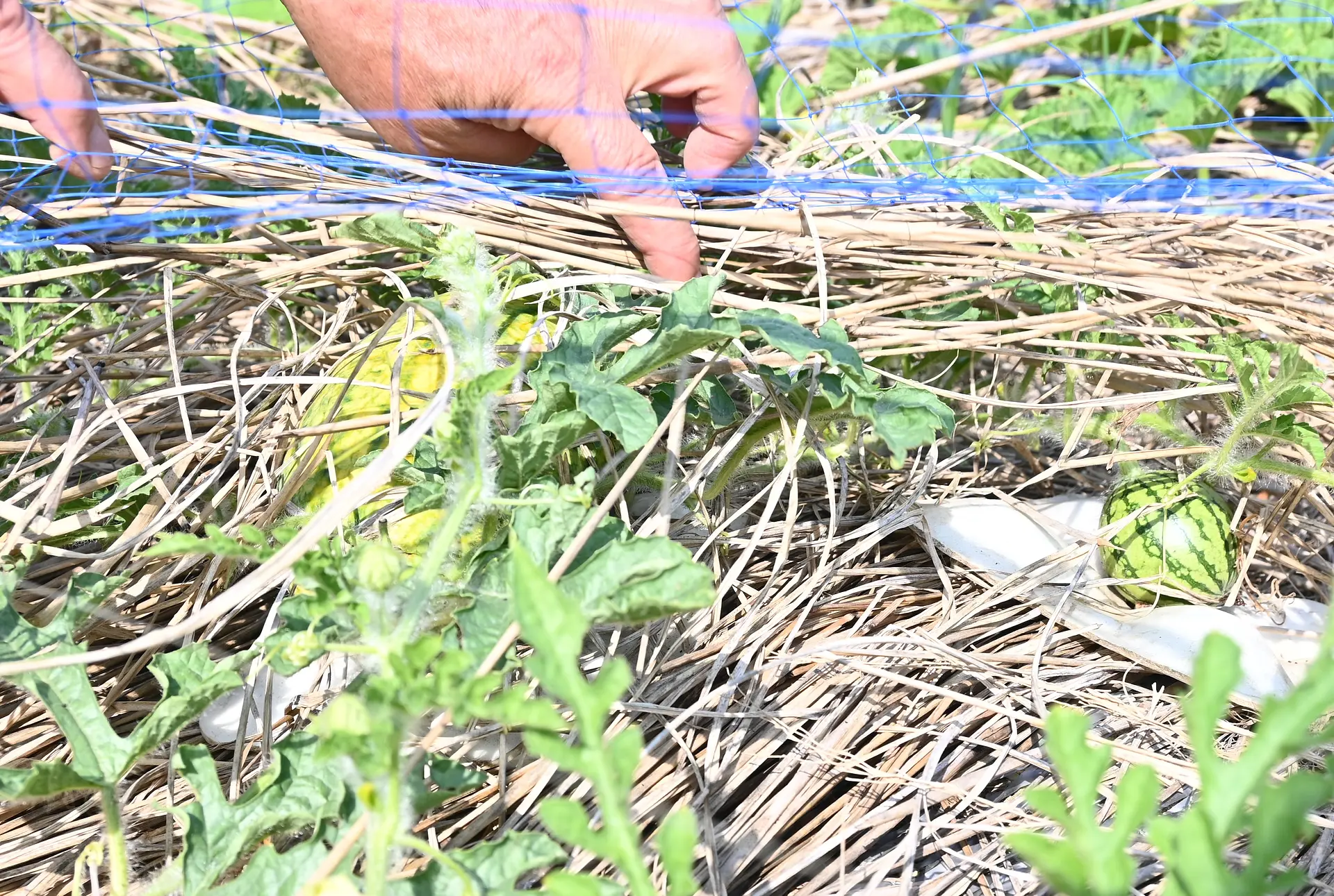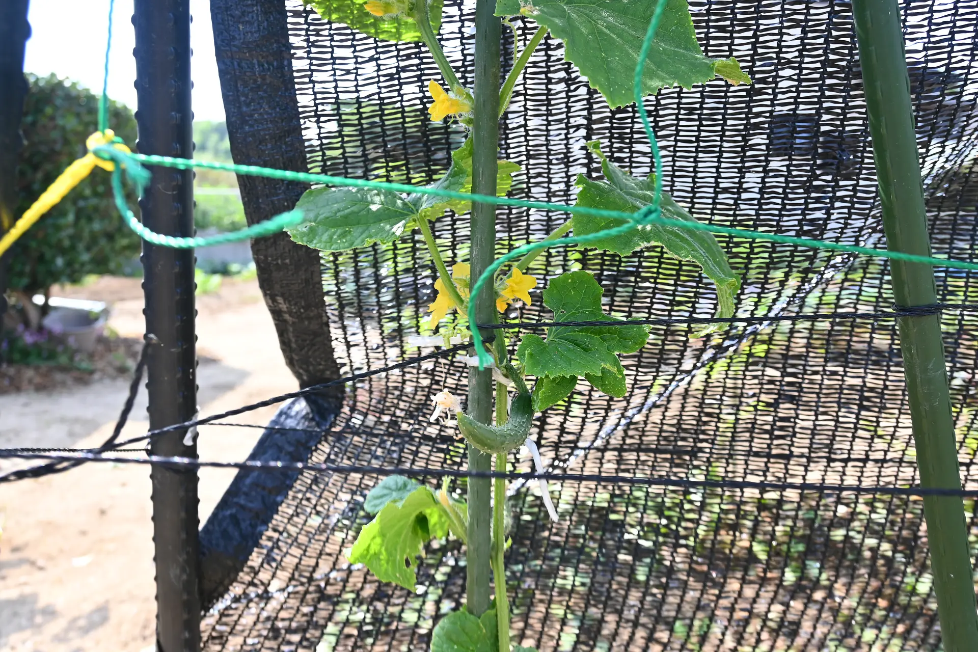 Cafe&Salonニーナの魅力は何といっても自家栽培の野菜。お店の近くに畑を借りてたくさんの野菜を作っています。この日はキュウリやピーマン、赤ちゃんスイカまで発見。ランチメニューに登場するため、すくすくと育っています。