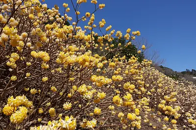 三重県津市美杉町では、森の中に黄色い丸い花を咲かせる「ミツマタの花」が観賞できるスポットがあります。春の訪れを告げる森の妖精「ミツマタの花」は、樹齢約70年の森の中に咲き広がり、まるで金色の絨毯のような幻想的な光景を作り出します。 例年3月中旬から4月中旬にかけて、3つに分かれた枝先に黄色い花を咲かせ、山の斜面に咲く様子を展望デッキから見下ろす景色は絶景です。 このトピックスでは、津市美...