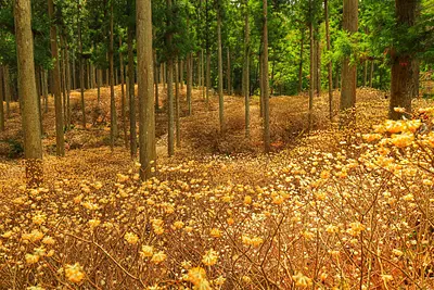 2024年の見頃はいつ?三重県美杉の森にある「ミツマタの名所」幻想的な金色の絨毯が広がります。